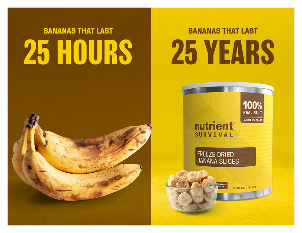 This retains over 90% of the nutrients and leaves the food shelf stable for 25 years without need of any preservatives.